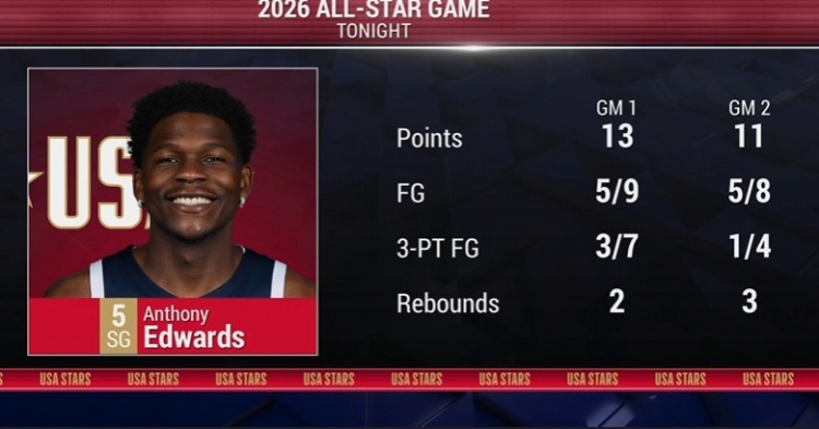 两场比赛,美国新星队球员爱德华兹均有出色发挥,首场比赛9投5中,三分7中3拿到13分2篮板;
